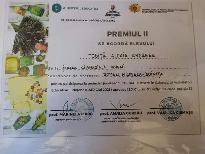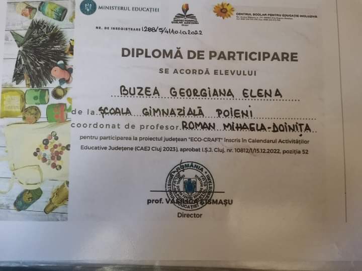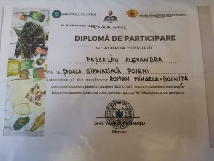 Elevii Școlii Gimnaziale Poieni și ai Școlii Gimnaziale ,,Aurel Munteanu” – Valea Draganului au participat cu lucrări din materiale reciclabile la Proiectul județean de creație artistică ,,ECO-CRAFT”.