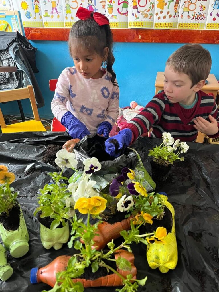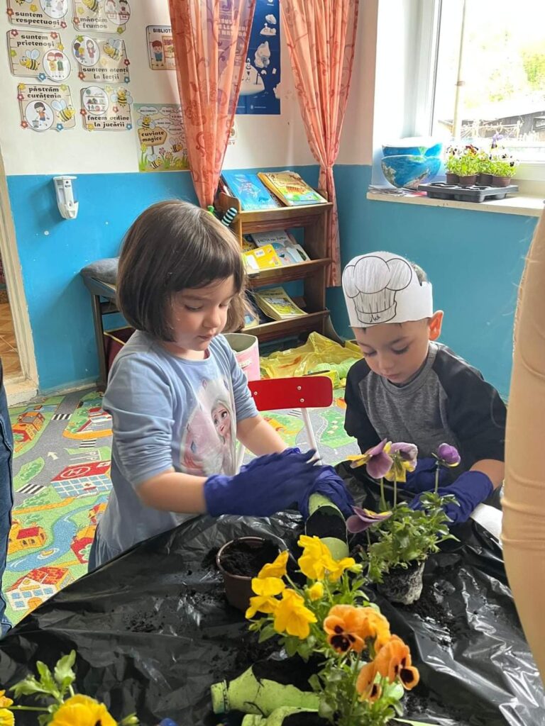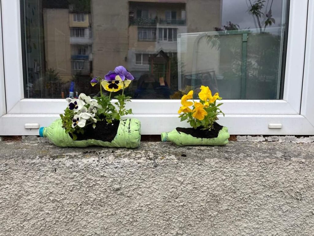,,Săptămâna Verde” – Grădinarii pricepuți” de la G.P.N. Poieni au realizat ghivece din materiale reciclabile, apoi au plantat panseluțe. 🥰