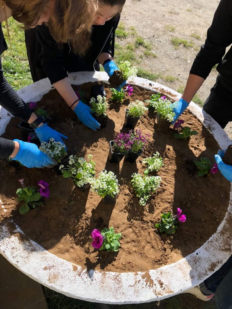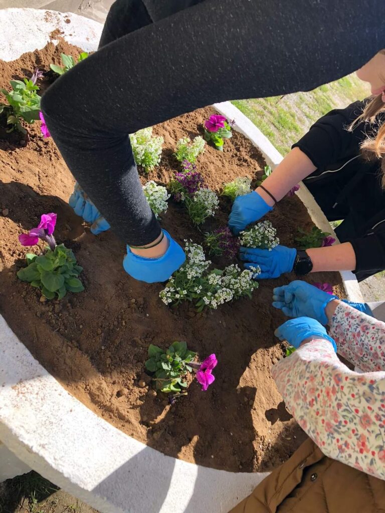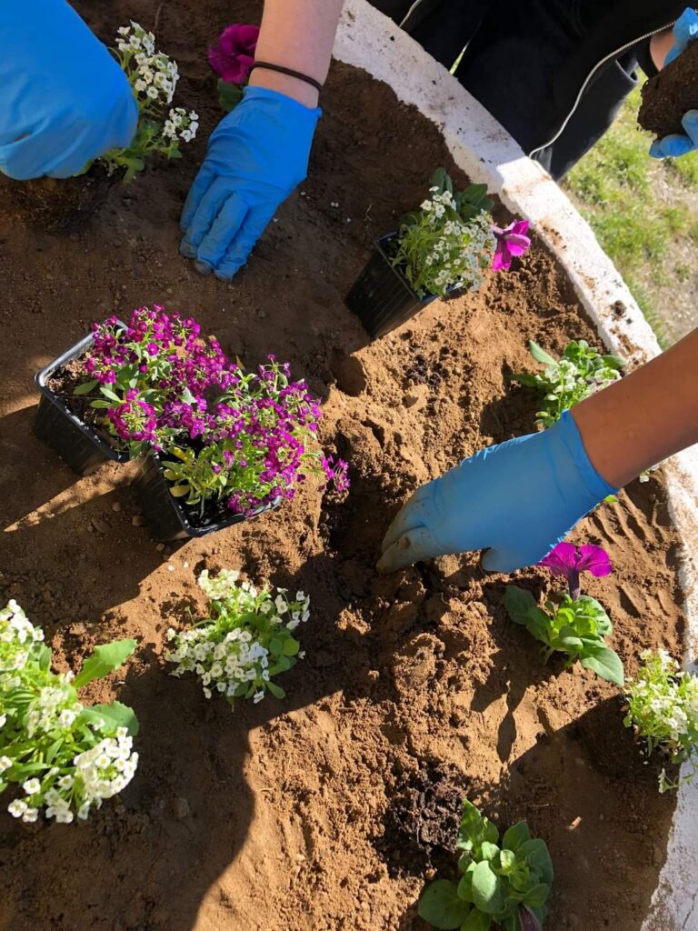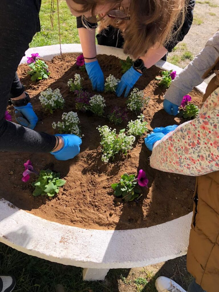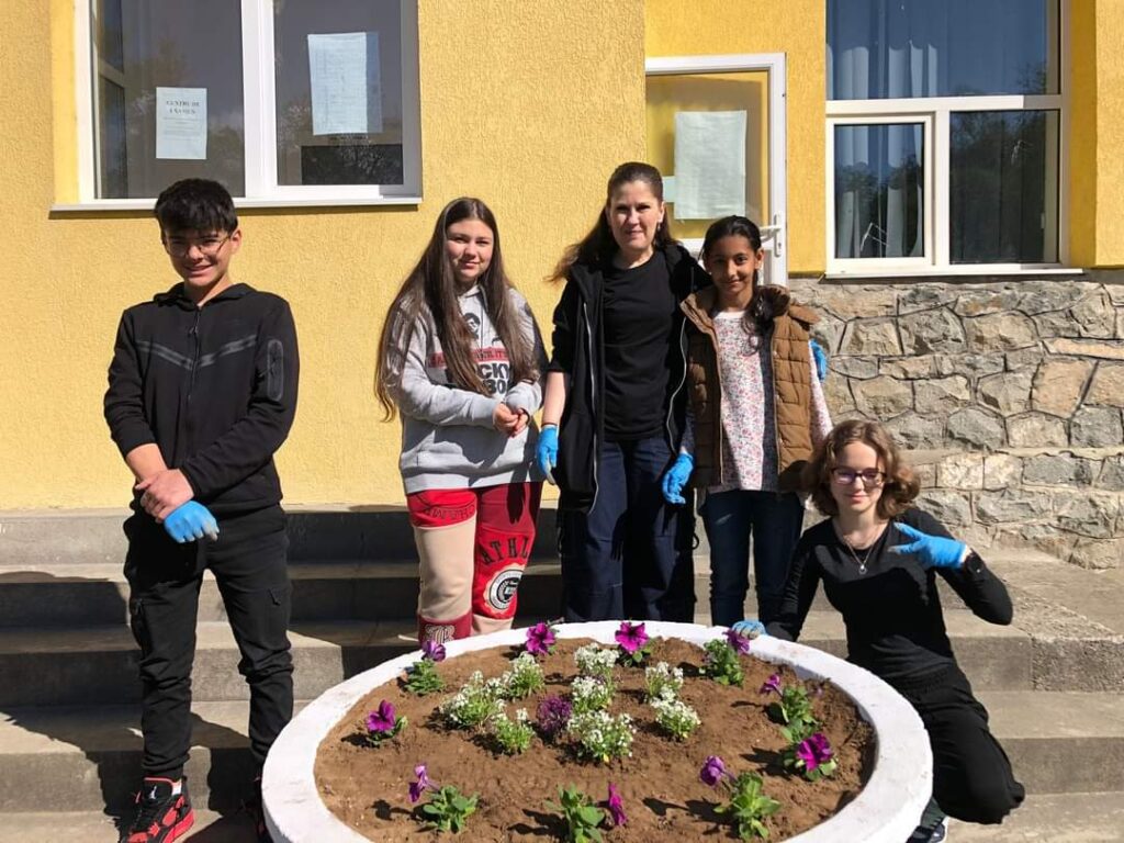 Plantare de flori, la Școala Gimnazială Poieni.