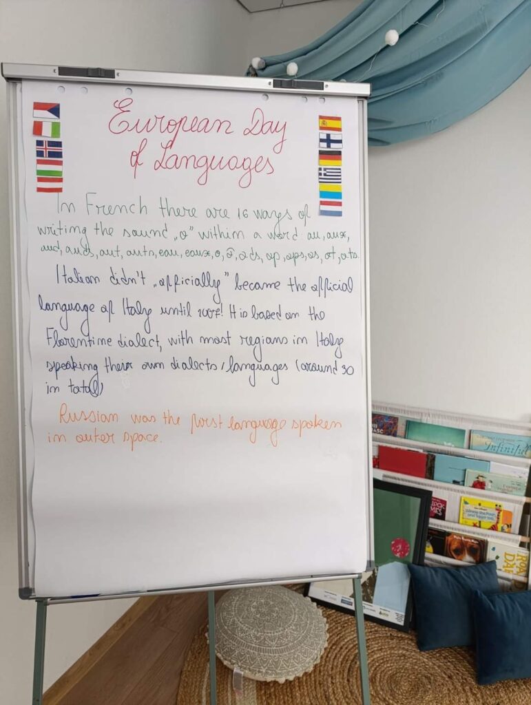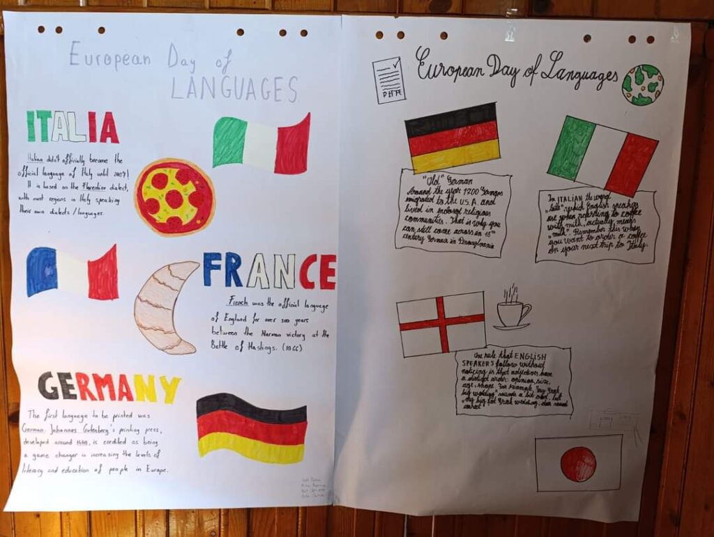 ,, Învățarea unei limbi străine și a culturii aferente acesteia este unul din cele mai folositoare lucruri în extinderea empatiei, a simpatiei imaginative și a perspectivei culturale a copiilor.” (Michael Gove) Pe data de 26 septembrie elevii Școlii Gimnaziale Poieni și Valea Drăganului au sărbătorit Ziua Europeană a limbilor străine, coordonați de doamnele profesoare Anca Neag, Mirela Sână și Flavia Briscan. Printre obiectivele activităților realizate amintim: atragerea atenției asupra importanței învățării de limbi străine, celebrarea diversității lingvistice și a plurilingvismului, creșterea interesului elevilor pentru studierea limbilor străine. Cu această ocazie, elevii au realizat postere cu informații inedite legate de diverse limbi europene, au rezolvat exerciții interactive, au colorat steaguri ale statelor europene, au scris mesaje în diferite limbi. Participanții la activități au colaborat, au lucrat în echipă, rămânând cu amintirea unor activități interesante și cu noi cunoștințe de cultură generală.