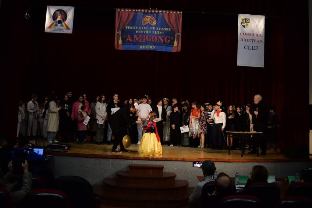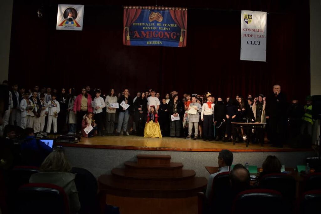 *🇹🇩 Activitatea a avut loc în Casa de Cultură din Huedin Ediția a IX-a a Festivalului de Teatru „Amigong” care este cuprinsă în Calendarul activităților culturale ale orașului Huedin. 📌 Tematica din acest an a festivalului a fost dedicată eroului național Avram Iancu de la nașterea căruia s-au împlinit 200 ani. 🏆🏆🏆 Au participat trupe de teatru ale elevilor de la liceele din Huedin (Liceul Teoretic „Octavian Goga” Huedin și Liceul Tehnologic „Vlădeasa” Huedin) și de la Școala Gimnazială Poieni / Valea Drăganului.🗓 Activitatea a fost organizată de Liceul Teoretic „Octavian Goga” Huedin în parteneriat cu Primăria / Consiliul Local Huedin / Casa de Cuktură Huedin, Societatea Cultural Patriotică „Avram Iancu” – Filiala Huedin, Asociația Umanitară „Dreptul la viață” Huedin și Asociația „Actived 2013″ Huedin.* Dintre elevii care au participat la Festivalul de teatru: ,,Amigong”, au fost premiați: Dumitraș Ana, Csengeri Messi și Abrudan Mihai.