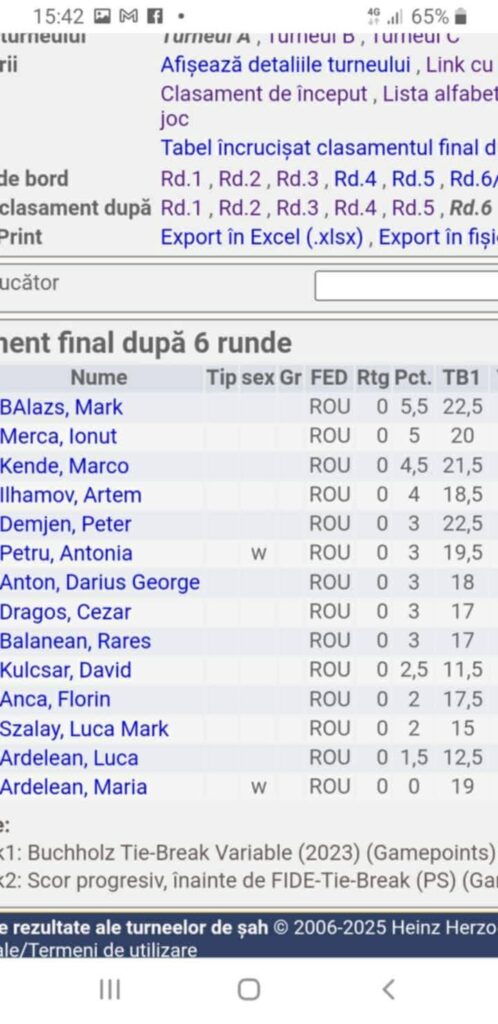 S-au desfășurat 6 partide, de 5 minute, plus 3 secunde runda.
