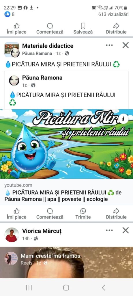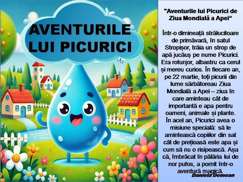 Preșcolarii de la Grădinița cu P.N. BOLOGA au sărbătorit Ziua Internațională a Apei, vizionând un filmuleț: „Picătura Mira și prietenii râului „, ascultând „Aventurile lui Picurici „, realizând fișe de lucru. În acest fel, ei au înțeles importanța apei în viața oamenilor, a plantelor și a animalelor. Apa înseamnă viață!