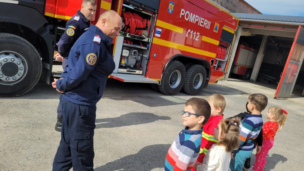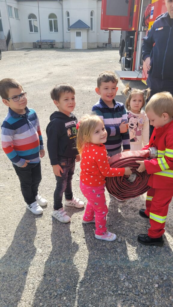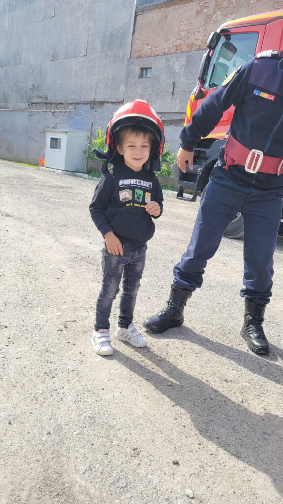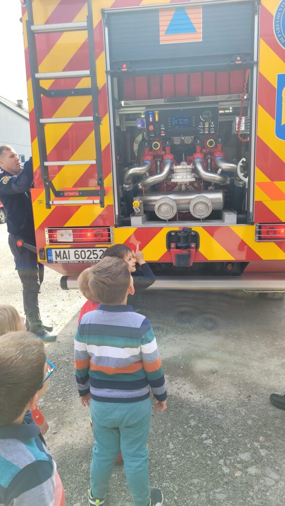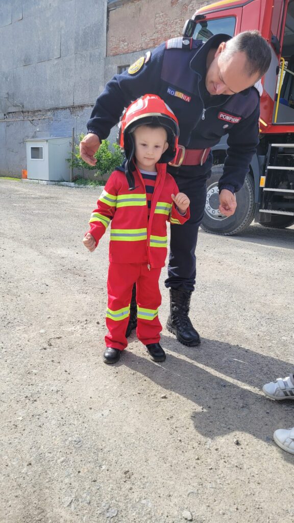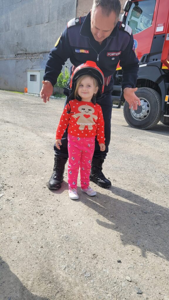” Vreau să devin și eu pompier”, activitate realizată de preșcolarii de la Grădinița Bologa. Au vizitat Unitatea de Pompieri din Huedin.