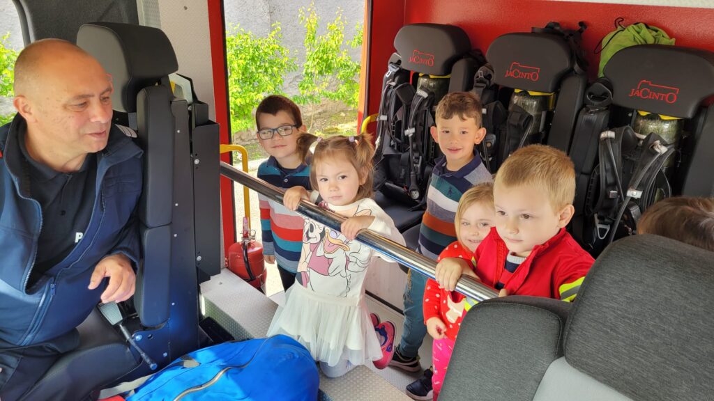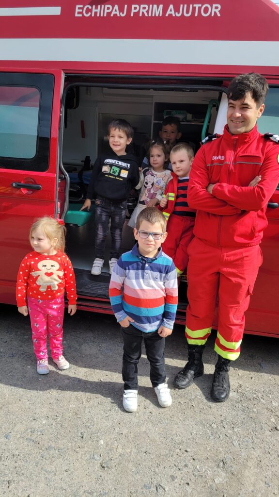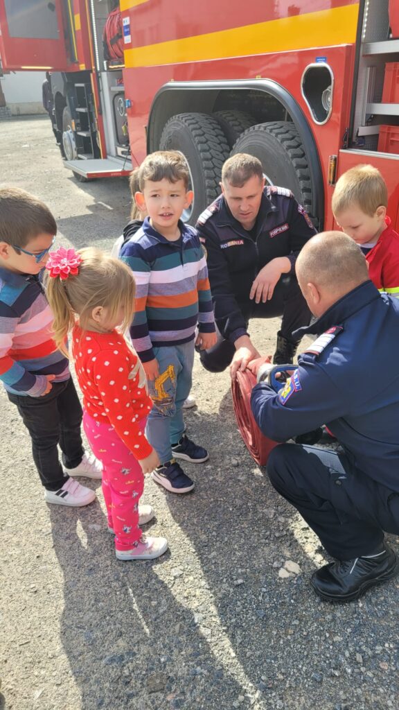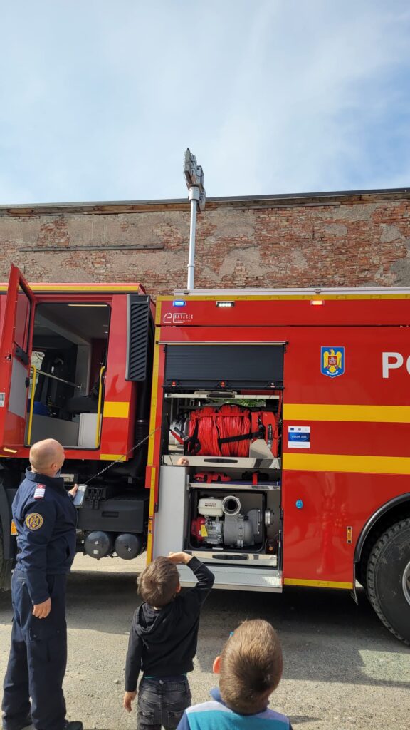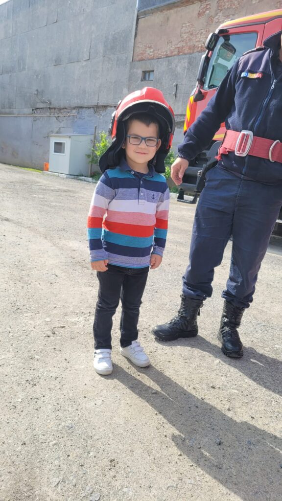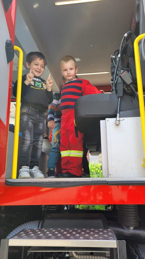 ” Vreau să devin și eu pompier”, activitate realizată de preșcolarii de la Grădinița Bologa. Au vizitat Unitatea de Pompieri din Huedin.